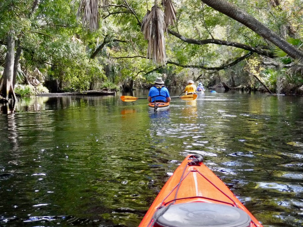If you ever want to get away from civilization and paddle in peace and quiet, then Blackwater Creek is the place for you. Blackwater is just as it name implies, a dark water (tannic) creek where water visibility is virtually impossible. But, that is not the reason you would want to visit. The reason is because it gets virtually no traffic and you can have the creek to your self. Just you and nature. We put in near the Bear Pond Trailhead and paddled 5 miles to the Wekiva River, then upstream another 5 to Katie’s Landing. To launch here you are required to get a State Forrest Use Permit and a gate code which will get you in. (Contact #352-360-6675)